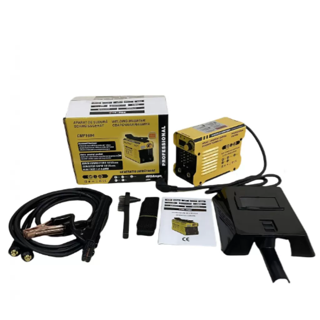 Designul compact, greutatea redusa (~3.5 kg) si manerul ergonomic fac din CMP1694 o unealta portabila si usor de utilizat. Afișajul digital permite un control precis asupra curentului de sudura, iar tehnologiile integrate asigura protectie impotriva supraincalzirii, supracurentului si lipirii accidentale a electrodului (anti-stick). Aparatul este compatibil cu electrozi intre 1.6 si 5.0 mm, oferind o gama larga de aplicatii.