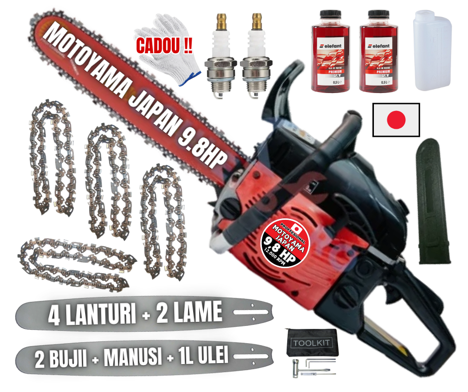 Motofierastraul pe benzina MOTOYAMA JAPAN este construita special pentru persoanele care apreciaza calitatile profesionale intr-un motoferastrau.