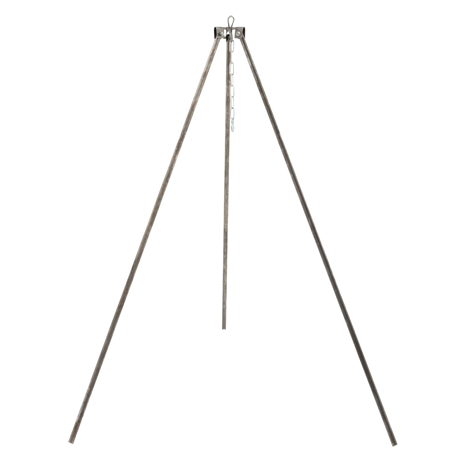 Cu o lungime de 100 cm, trepiedul asigură o înălțime optimă pentru suspendarea ceaunului deasupra flăcărilor, permițând o distribuție uniformă a căldurii și controlul eficient al temperaturii de gătit. Materialul din oțel oferă rezistență la temperaturi ridicate și condiții de utilizare în aer liber, asigurându-ți că trepiedul va rămâne stabil chiar și pe terenuri mai accidentate.